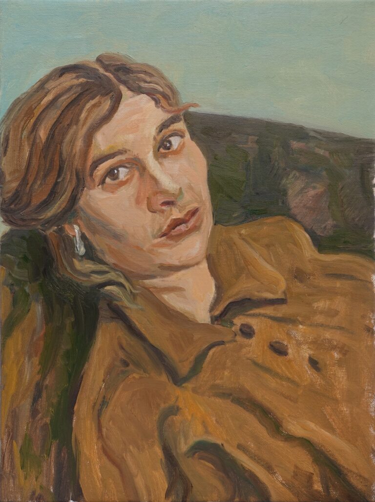 J. wischt die Ölfarbe immer nur an einem Hosenbein ab. In der Ecke des Raumes liegen seine Straßenkleider, im Kreuzberger Atelier trägt er verschiedene Paare Jeans, die alle nur rechts von Ölfarbe verschmutzt sind. Eine Eigenart, die mich beschäftigt – so wie meine Mäntel nur auf der linken Schulter verschließen, weil ich die Handtasche immer auf der selben Seite trage. Und dann sagt er etwas, das mich beruhigt: „Bis die Malerei vollständig getrocknet ist, dauert es Jahre.“ Sie ist also im Werden begriffen, bleibt unfertig, im Prozess, selbst wenn sie unangetastet bleibt – so wie unsere Körper, die, selbst im Ruhezustand immer in Bewegung bleiben. Die Zellen erneuern sich täglich, stündlich, im Sekundentakt – und so ist ein Porträt immer mehr, als (nur) ein Abbild. Es ist auch ein Selbstporträt der Maler:in, es ist ein vergänglicher Blick auf einen vergänglichen Menschen, in einem höchst vergänglichen Moment. Und es arbeitet weiter, arbeitet vor sich hin, selbst wenn der letzte Pinselstrich getan ist.