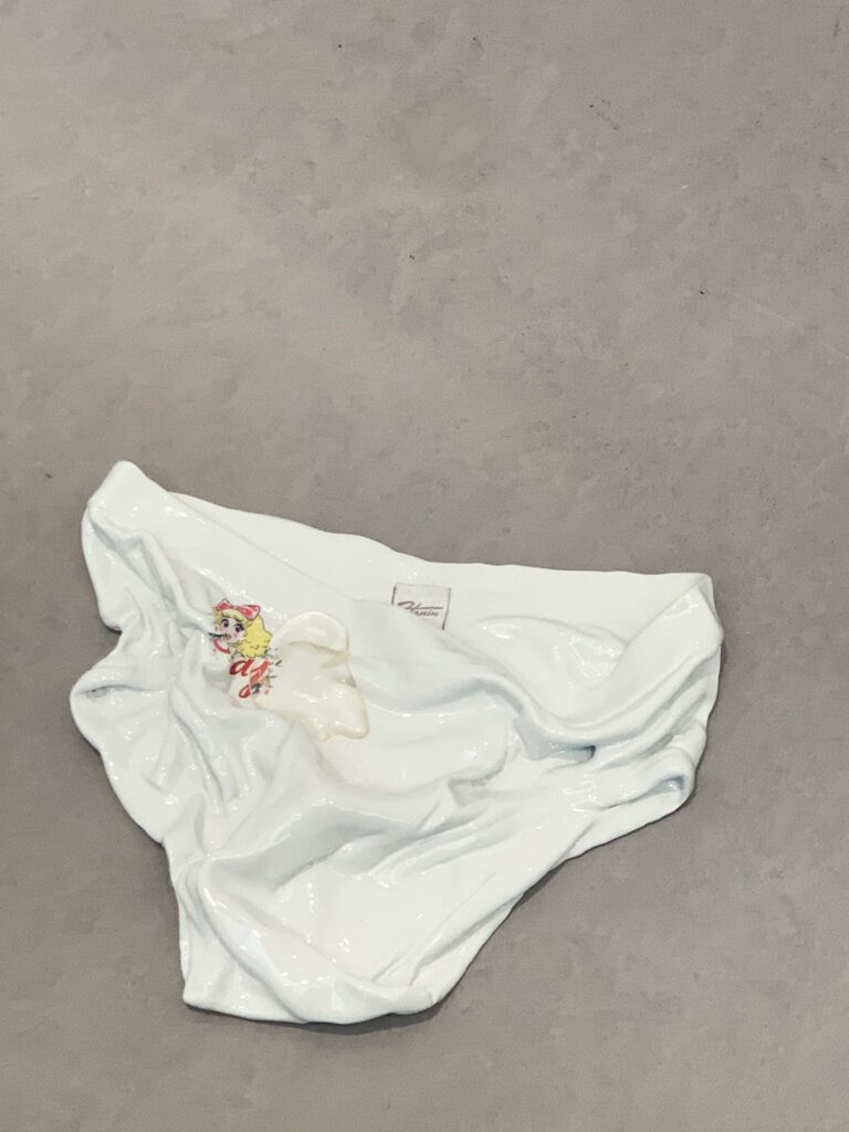 Eine Unterhose aus Keramik zerknüllt auf dem Boden. Ein Alltagsmoment voller Nähe, Körperlichkeit und Wärme. Vielleicht auch der Verweis auf die Nacktheit des nun unterhosenlosen Körpers. Inmitten des Schauens und der um Aufmerksamkeit buhlenden Kunstwerke ist es ein kurzer, ein weicher Moment. Es scheint absurd, dass der Rubens bei Gagosian weniger Eindruck hinterlässt, als die Keramikunterhose bei Marfa Projects. Aber so ist es.